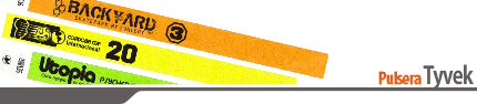 El Tyvek es un material sintético de apariencia similar al papel, pero muy resistente a la tracción y al agua, recomendable para eventos de larga de duración, personal técnico, de carga y descarga, piletas, escuelas de verano, pistas de skate, etcétera. Esta pulsera es importada desde Canadá e impresa por Papel Entrada bajo un estricto control de seguridad. Todo el material de matricería y puesta a punto sobrante, es destruido para garantizarle al organizador que no habrá pulseras "mellizas" en su evento.